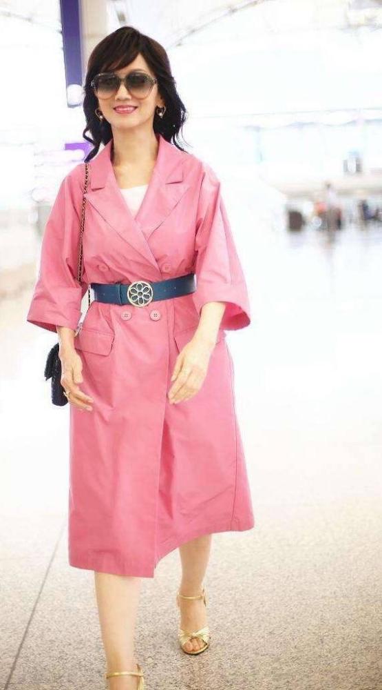 还有这件玫粉色的风衣,效果也非常惊艳!7分袖的款式搭配风衣的版型,用一条蓝色腰带凸显出完美的身材比例,金属花朵图案点缀在腰带上,瞬间提升品位。内搭是简洁的白色,不会喧宾夺主,光腿穿凉鞋,又能将女人味展现得淋漓尽致。