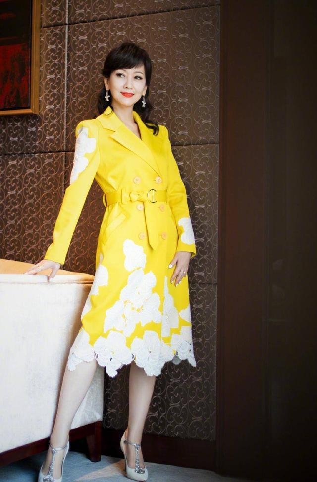除了嫩嫩的粉色,赵雅芝对花哨的色调有一份执念,总想通过这种张扬亮眼的色彩,来掩饰自己的真实年龄,凸显活力。虽然每次精修图上这张脸蛋光滑细嫩,而实际上60多岁的女人不可能没有任何皱纹,但她的气质依旧是在线的,所以倒也还看得过去。亮黄色的风衣点缀着白色的花朵图案,颜色对比非常强烈,亏她这么自信还敢穿!