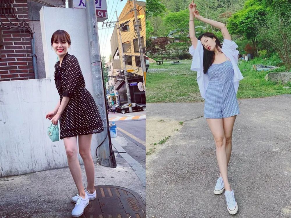 小个子在具体搭配时,最重要的是腰线,不论是穿连衣裙、还是连体裤,泫雅都会注意这一点。