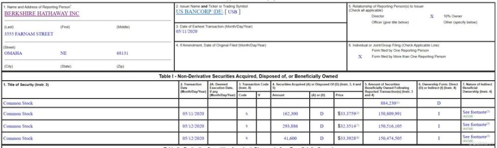 一个月不到,5月11日-12日,巴菲特就把美国合众银行卖出:共出售了49.78万股,平均出售价格为33.04美元。