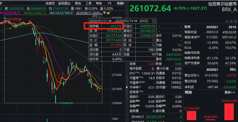 5月2日,巴菲特旗下的伯克希尔·哈撒韦公司(Berkshire Hathaway)披露一季报,投资账面巨亏545亿美元(约合人民币3850亿元)!