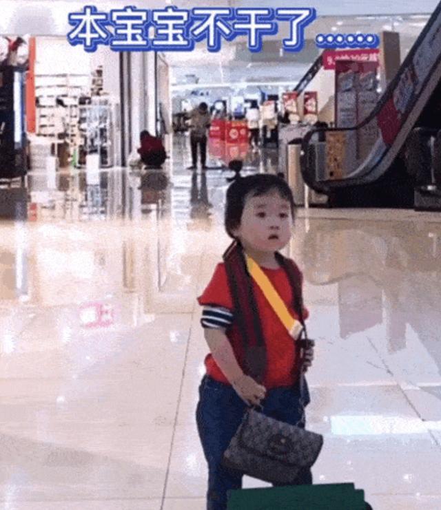 「你们逛街秀恩爱,让本宝宝替你们背包,本宝宝不干了!」