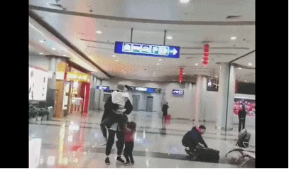 谁知,妈妈丢下行李,冲入了爸爸的怀抱。