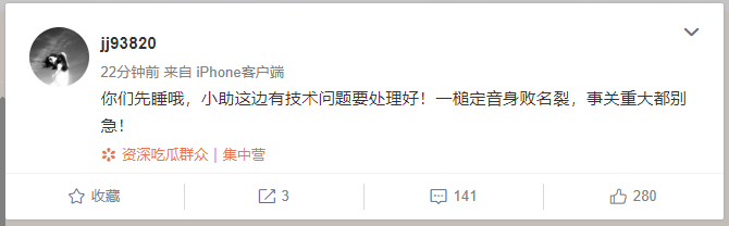 5月20日王雨馨助理连推送了多条博文后,5月21日凌晨2点多,王雨馨助理再次发生,疑似要放大锤,彻底将黄景瑜打垮。称“你们先睡哦,小助这边有技术问题要处理好!一槌定音身败名裂,事关重大都别急!”